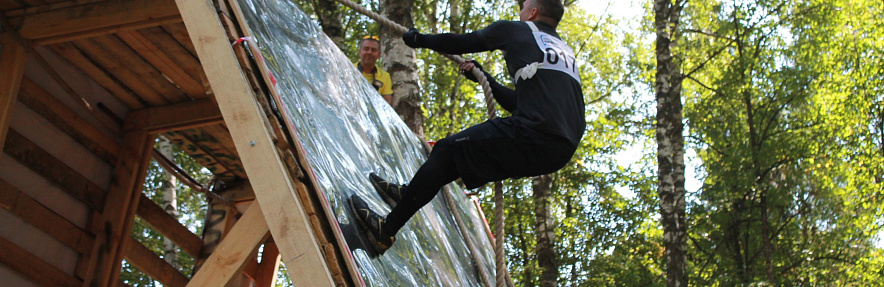 И вот наконец-то команды прибыли на финиш! Пока жюри считали баллы, участникам предложили развлечься. В маршруте "Тропы героев" есть обязательная точка - эверест. Она представляет собой большую самодельную гору, по которой нужно взбираться с помощью каната. И все-таки нашлись смельчаки, отважно преодолевшие препятствие.