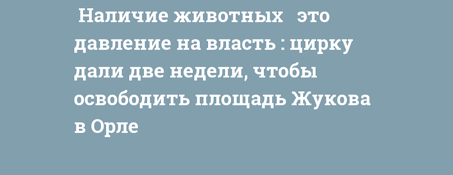 Администрация города опасается, что цирк к 1 апреля самостоятельно не сможет выполнить все работы по демонтажу. В этой связи, уже сейчас УКХ Орла готовит проектно-сметную документацию. Подыскивает администрация и места для содержания животных, которые в настоящее время находятся в трейлерах цирка.