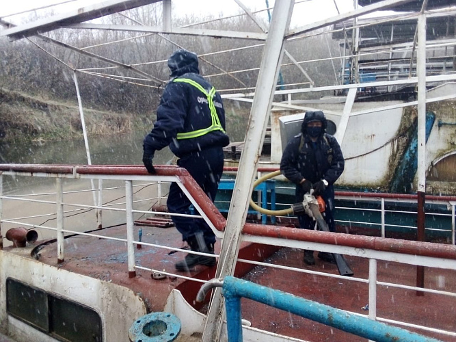 В Заводском районе Орла сотрудники МЧС очищали поверхности реки от горюче-смазочных материалов. 26 апреля на стоянке речных трамвайчиков в реке Оке заметили радужную пленку.