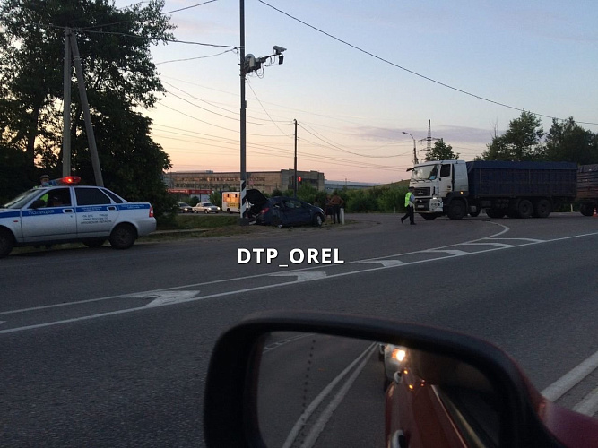 В Орле на объездной грузовик с прицепов протаранил легковой автомобиль «Опель». Фотографии аварии появились в соцсети.