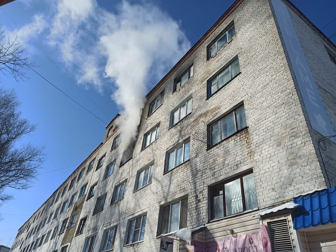 Очаг возгорания находился в одной из комнат на четвертом этаже. В течение 20 минут пожар был локализован.