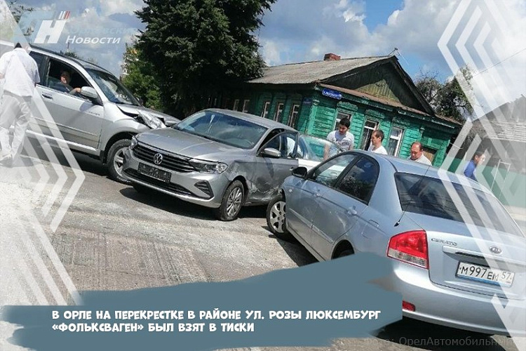 В Орле, днем 21 июля, на пересечении ул. Розы Люксембург и Маяковского произошло столкновение трех автомобилей. Фотографии с места ДТП появились в телеграм-канале «Орел автомобильный».