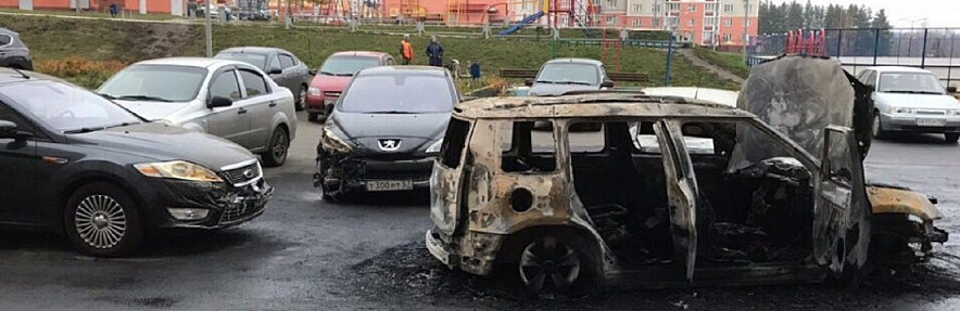 Этой ночью в 01:25 автомобиль "Шкода", припаркованный во дворе дома №8 по улице Генерала Лаврова, полностью сгорел. Еще четыре машины, стоявшие рядом были повреждены огнем в разной степени ущерба: оплавились фары, бампера, у одного из соседних автомобилей пострадал салон.